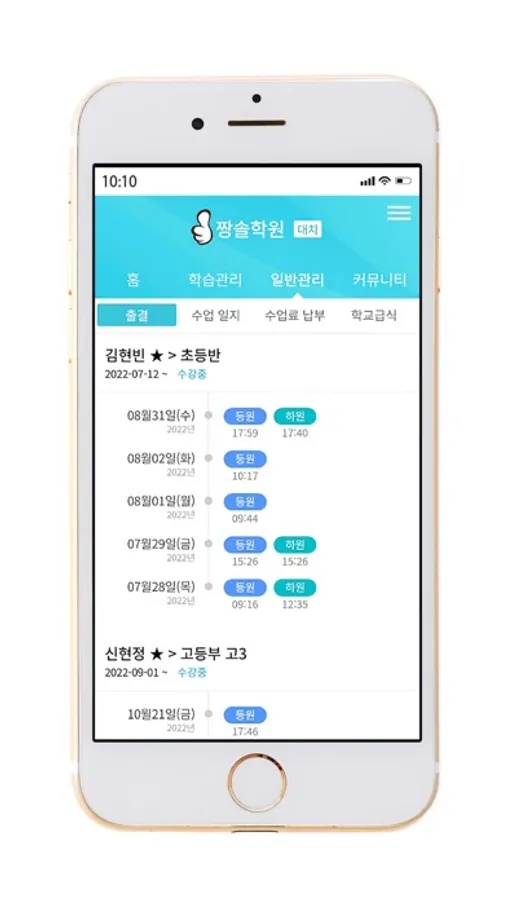 자녀의 등/하원에 대한 정보를 실시간으로 확인 가능하며, 출결에 대한 히스토리 관리가 수시로 가능해 집니다.