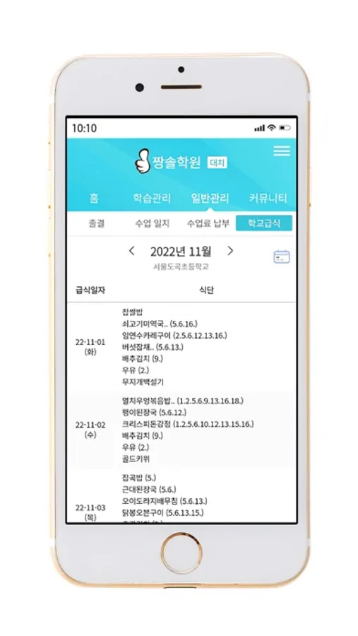 우리 아이의 오늘 급식, 주간 급식을 확인하기 위해서 매번 학교 홈페이지를 방문하실 필요 없이 앱에서 자녀의 학교 식단을 쉽게 확인 하도록 구현되어 있습니다.