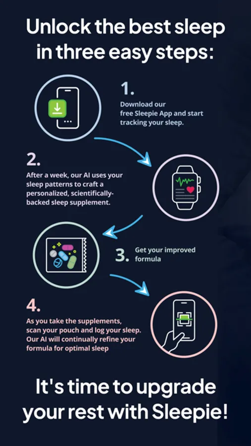 Sleepie connects with most wearables and health platforms including Apple Health, Google Fit, FitBit, and Oura. It employs a unique AI algorithm to analyze your sleep data and personalize sleep supplement formulas.