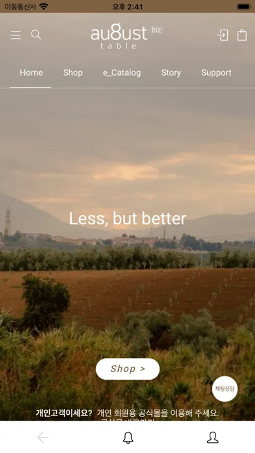 이 앱은 어거스트테이블 비즈몰(사업자) 회원을 위한 전용 앱입니다.