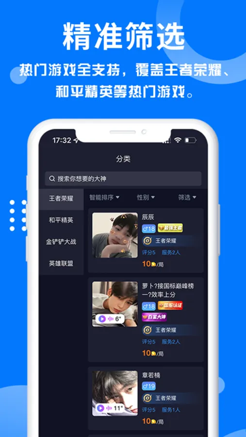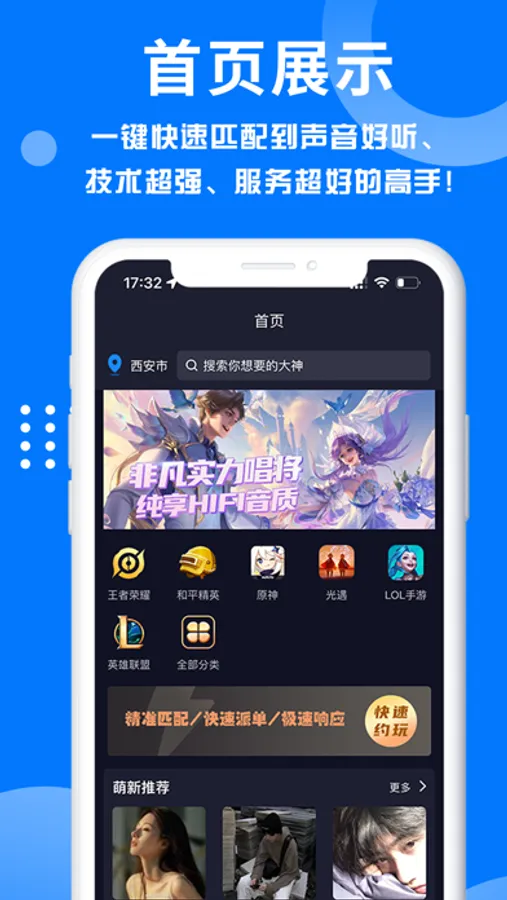 1、一键快速匹配到声音好听、技术超强、服务超好的高手!