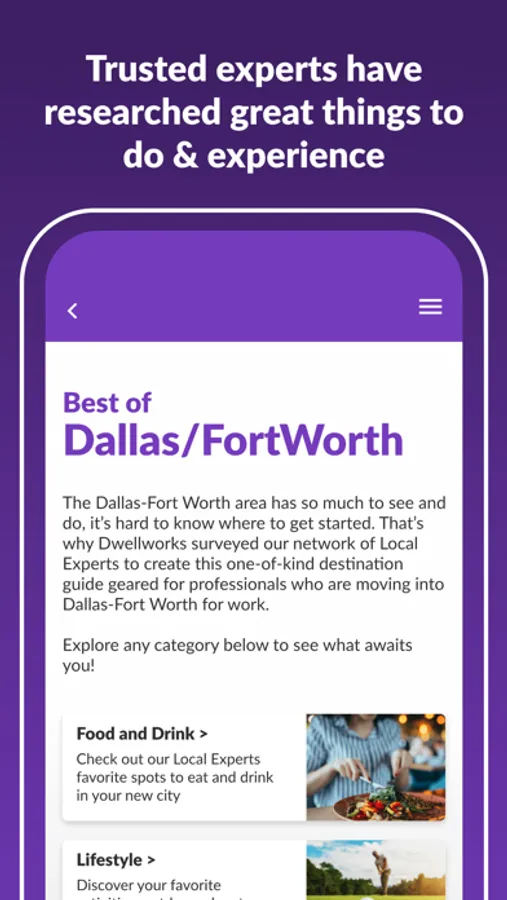 Available exclusively for guests of Dwellworks Living, Xplore provides great information about things to do, see and explore in destinations around the world. Collected and curated by our local experts, the content for each destination may include things like: