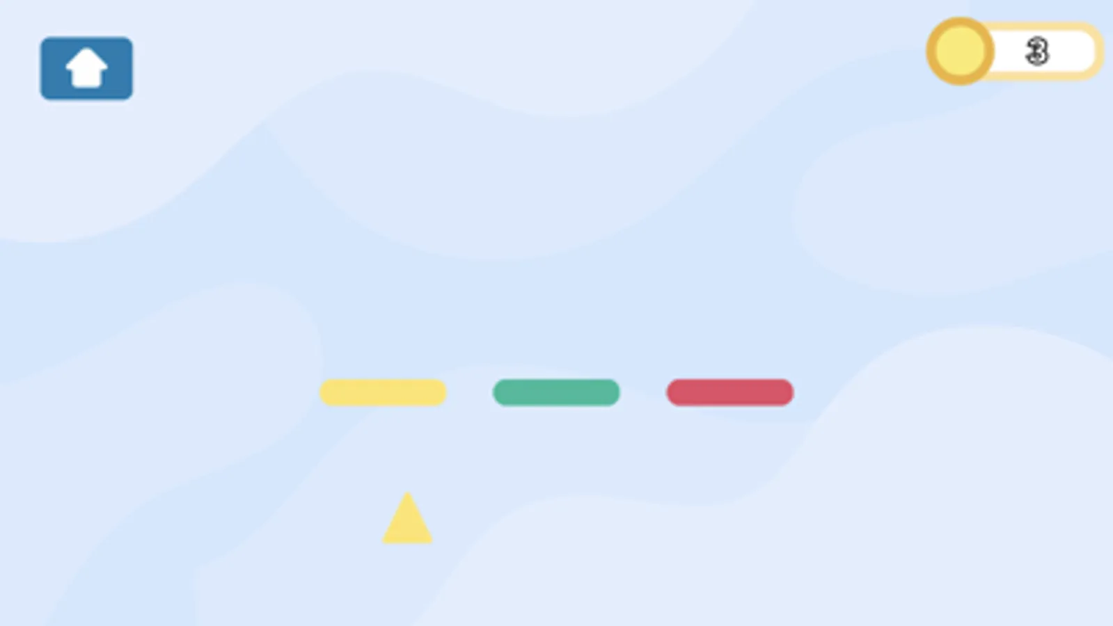 Push the triangle to the two sides so that the same color as the horizontal bar moves down and change the color of the triangle, can quickly collide with all 3 horizontal bars on the same line if the same color.