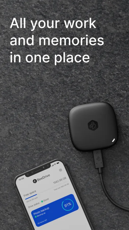 Running out of storage space or reluctant to pay perpetual cloud subscription fees? BeeDrive provides fast photo and video backup over Wi-Fi, letting you free up storage space on your device.