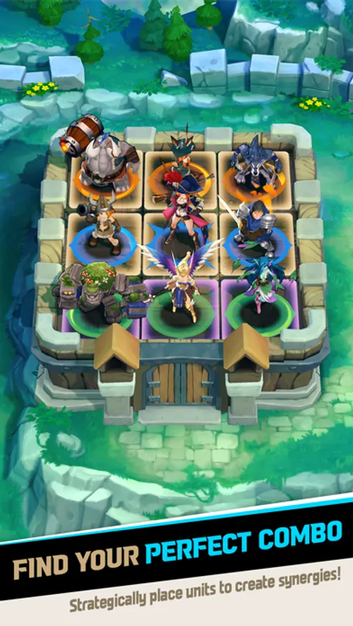 Strategically deploy units based on their type, faction and attack range to maximize the synergy effects!