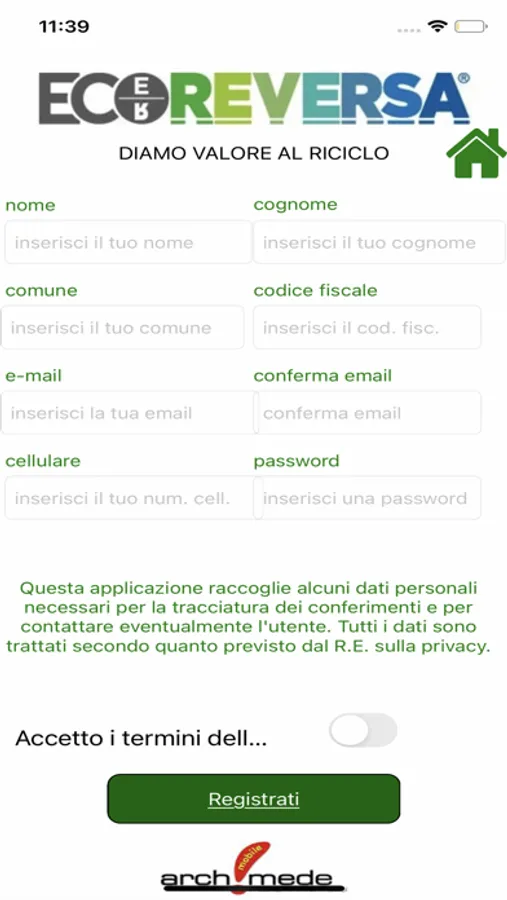 App per la gestione degli EcoPunti ottenuti dal deposito di bottiglie di plastica presso i compattatori della Innovation srl