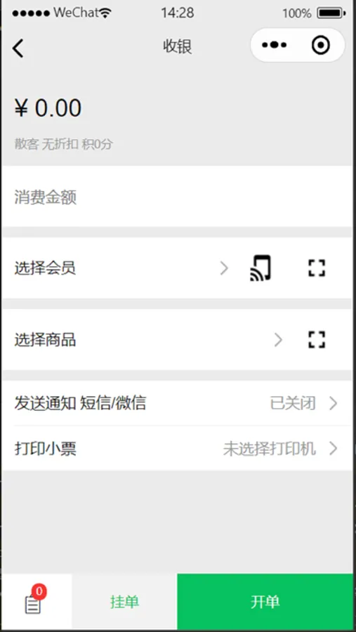 【记账收银】适配手机扫码,可微信、短信通知会员,会员实时查看交易、余额;