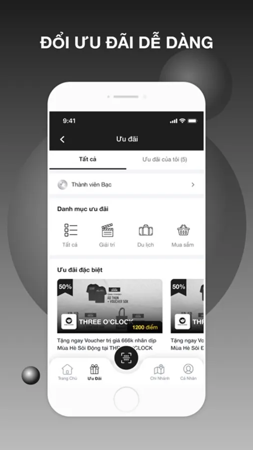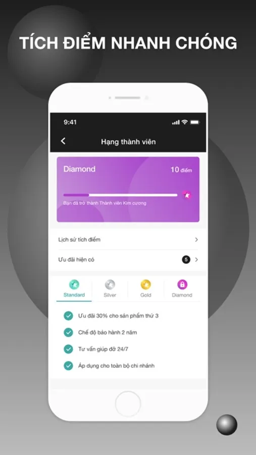 Dễ dàng tích luỹ điểm chi tiêu và nhận ưu đãi hấp dẫn tăng dần theo từng hạng mục Hội viên như giảm giá hoá đơn, quà sinh nhật, E-vouchers, v.v.