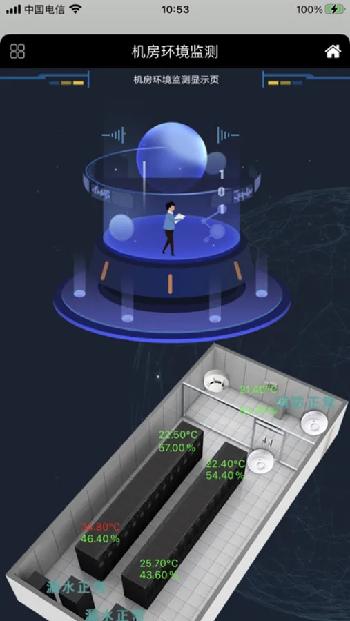 2、实时界面:以图形化界面的方式实时显示机房监控设备的相关参数值;
