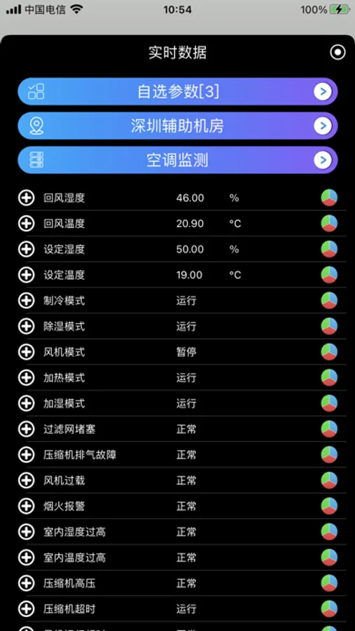 3、自选参数:以用户自定义添加关注度较高的参数实时显示相关参数值,并进行相应的控制操作;