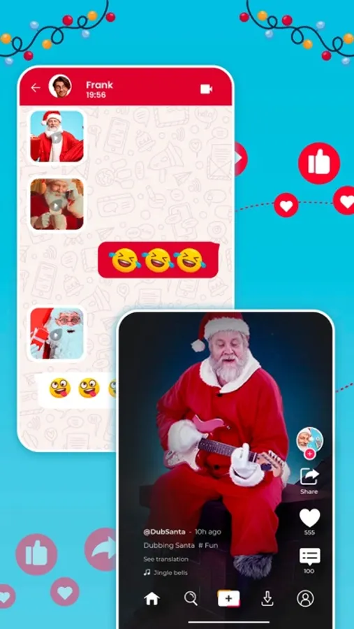Just choose a funny xmas video from our templates or upload a video from your device, trim it, add sounds, personalize it, and you're good to create your own Christmas video dubbed with your personal message. With Speak to Santa voice dub app, it's all a game of mix and match. It puts your creative skills to test. Show off your acting skills, do comedy, or just lip-sync.