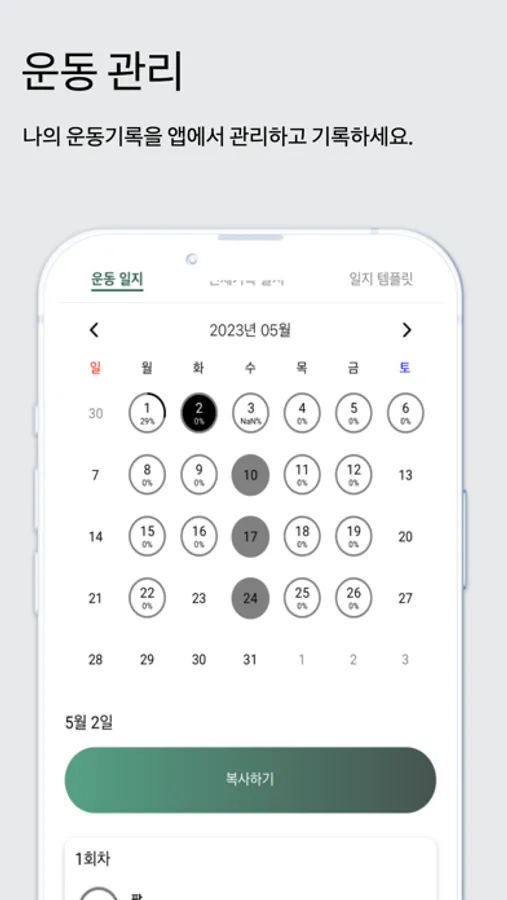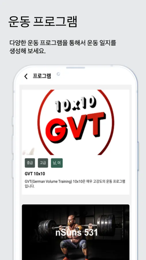 - 다양한 운동 프로그램을 통해서 운동 일지를 생성할 수 있습니다.
