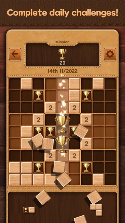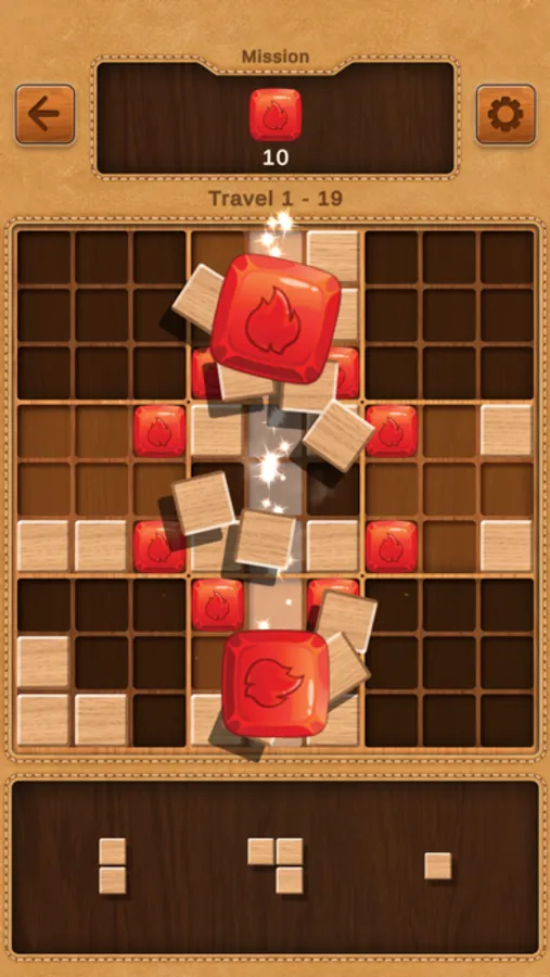 Easy to play, the only thing you need to do is to remove as many pieces of wood as possible following the objectives for each stages on the 9 x 9 wood board. It doesn't have to be on all 9 x 9 grid but, you can also clear all blocks in the 3 x 3 grid! Make your own strategy to get a consecutive lines clearing and get COMBO SCORE! Give it a try and you will love this block puzzle game.