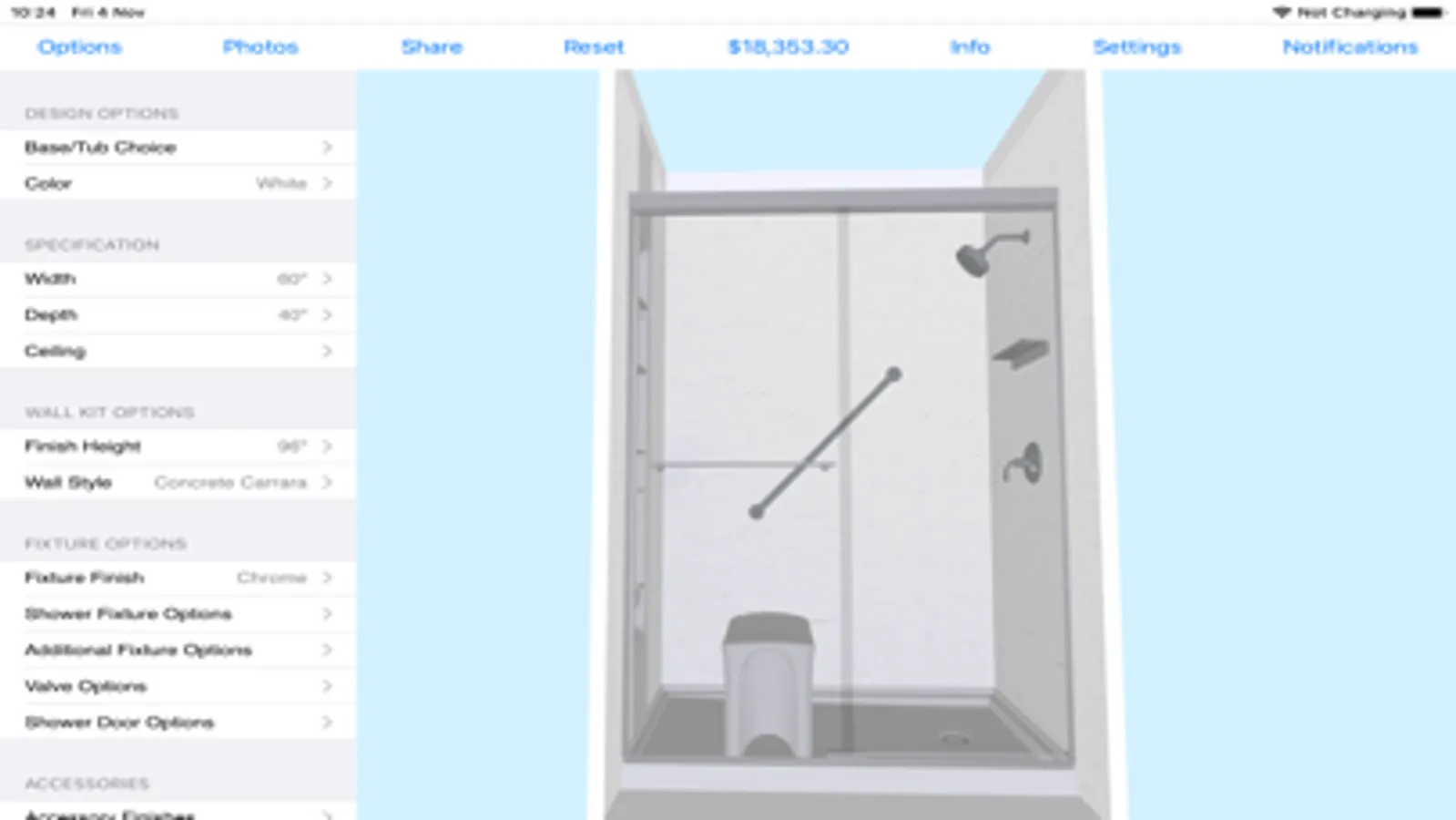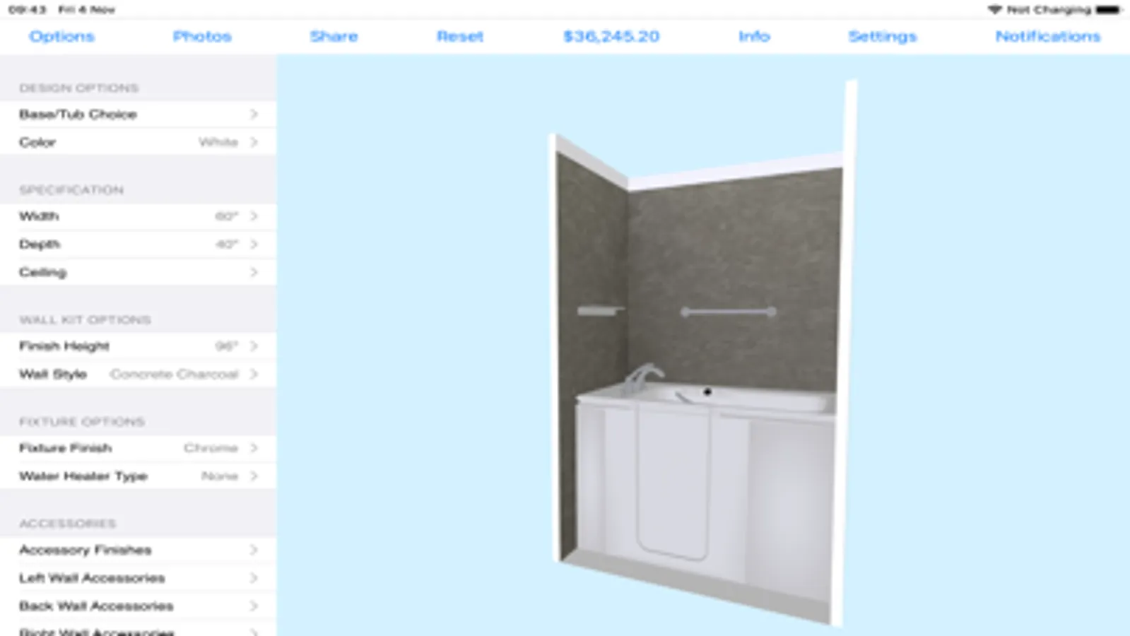 Smart Bath allows you to show your customer thousands of configurations of baths, showers and other bathroom furniture. You can then adjust the size, colors and specifications to match their exact needs.