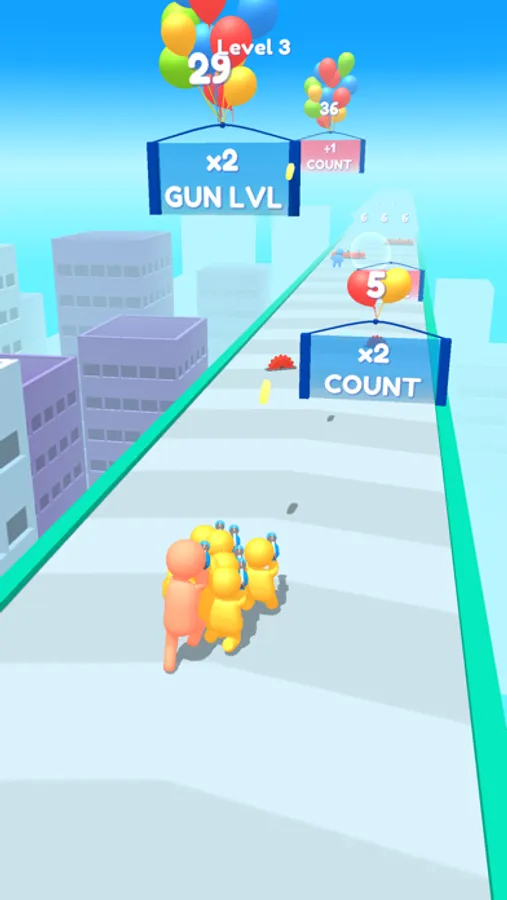 Shoot the balloons to lower the gates and collect your upgrades