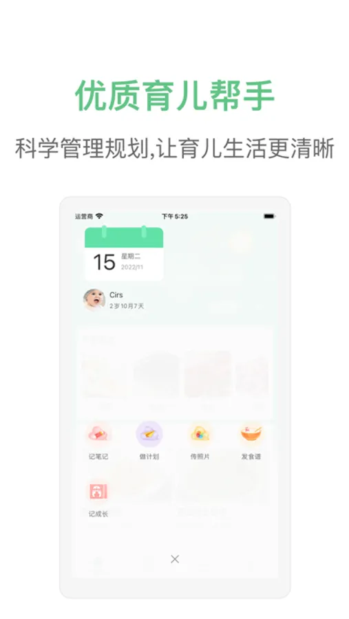 ·育儿日记:所有记录宝宝成长的瞬间都会自动生成每天的日记,更方便以后查询。