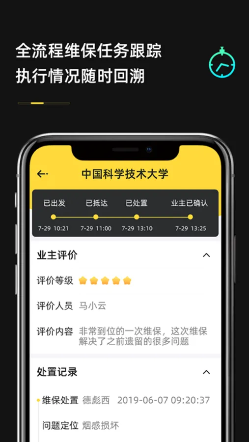 3、维保全流程监管:从维保计划制定、下发到现场维保过程记录、故障消除的全过程闭环监管;