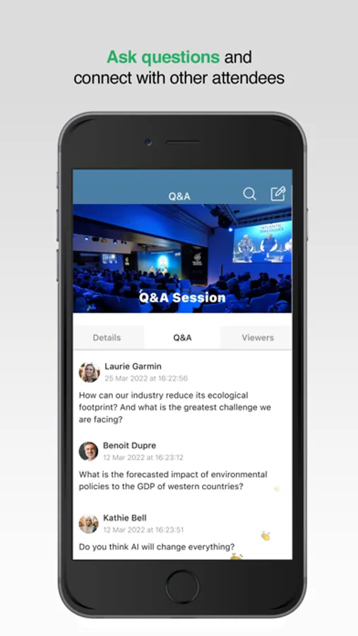 Consult the conference agenda, explore the speaker and participant biographies, exchange digital business cards, send messages, schedule meetings, participate in live Q&A and polling sessions, take notes, fill out surveys, download your data after the event, and much more.
