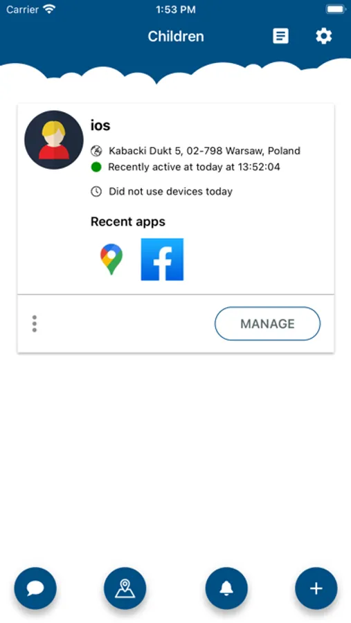 • SOS button for a child. If pressed, the parent's device gets notified.