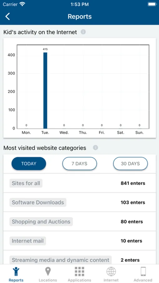 • Monitoring the access time to the Internet and applications on the child's device, as well as sound status or battery level.