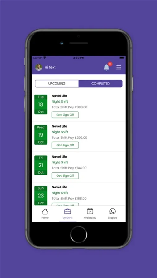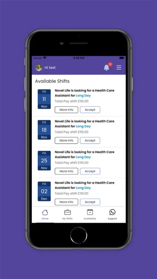 Our app helps nurses, carers and other medical staff to create an account, upload their certificates and maintain current fit to practice status. Care homes and hospitals can post shifts through the app for fast and easy notification to the allocated staff to view available vacancies and accept shifts. The app also helps the staff and employers to see their respective work history, payment history, timesheets etc.