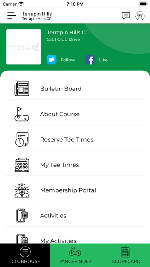 Terrapin Hills CC gives you access to an on-course rangefinder, live scoring system, course information, weather updates, tee-time booking service, and messaging systems functions. Additionally, the Terrapin Hills CC app may be used to sign up for events, view your membership portal, order food and beverage, and receive course promotions at Terrapin Hills CC.