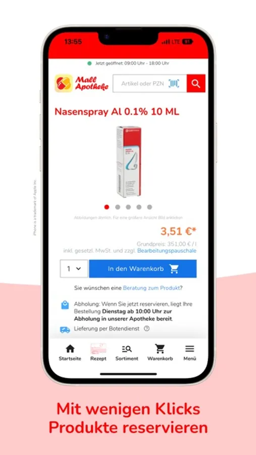 Wir bieten Ihnen über die App unser gesamtes Sortiment. Nicht sofort verfügbare Produkte bestellen wir für Sie und machen Sie in der Regel bis zum nächsten Werktag abholbereit. Gerne liefern wir Ihnen Ihre Bestellung per Botendienst direkt nach Hause.