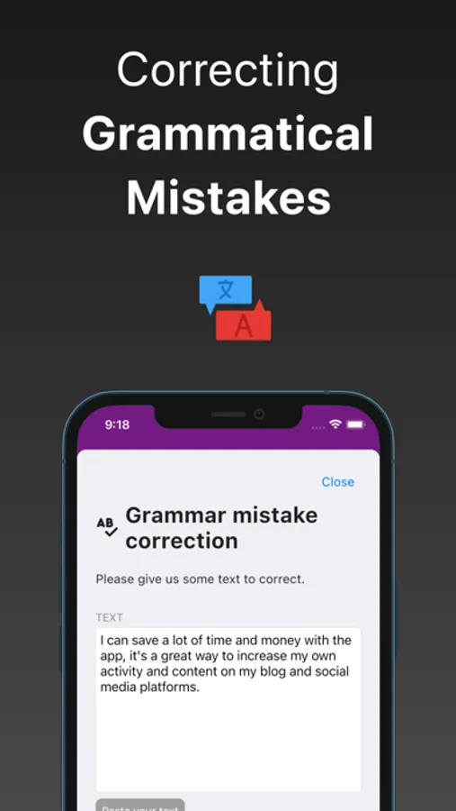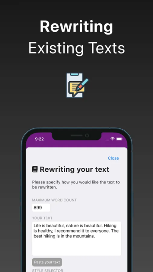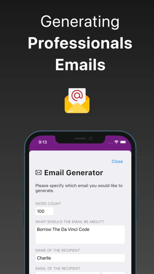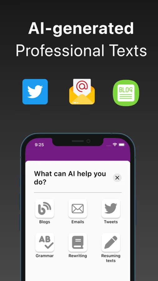 The app generates professional texts using the latest generation of artificial intelligence models.