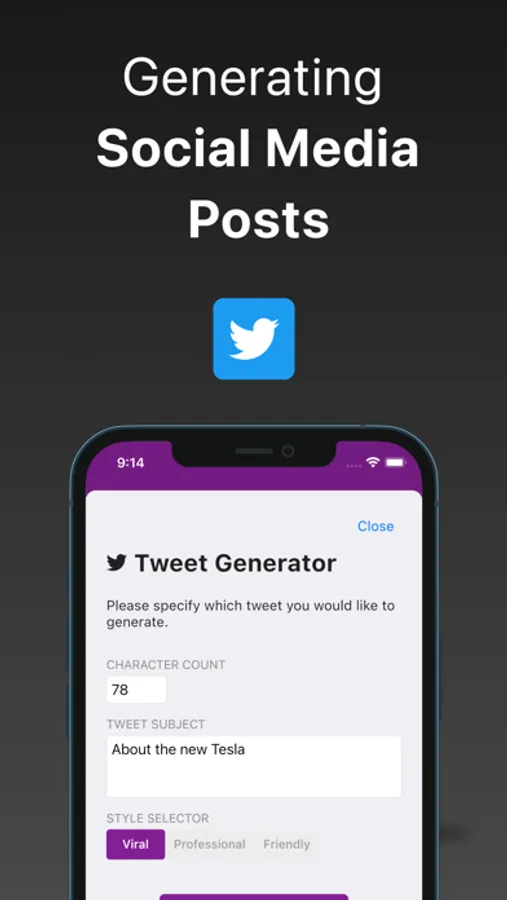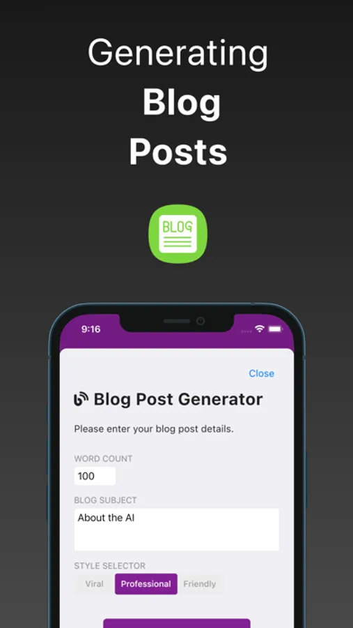 - Choose the style of writing you want the application to use (Professional/Informal/Viral)