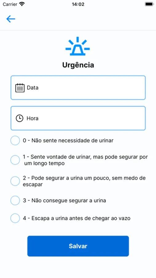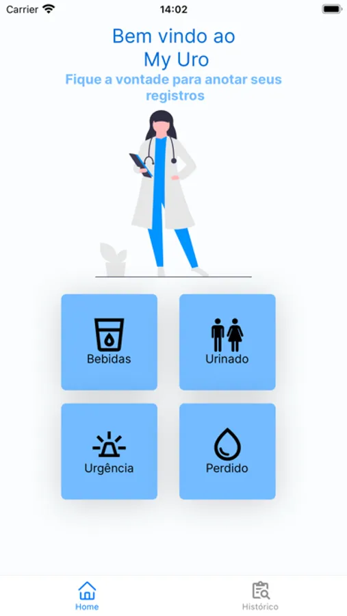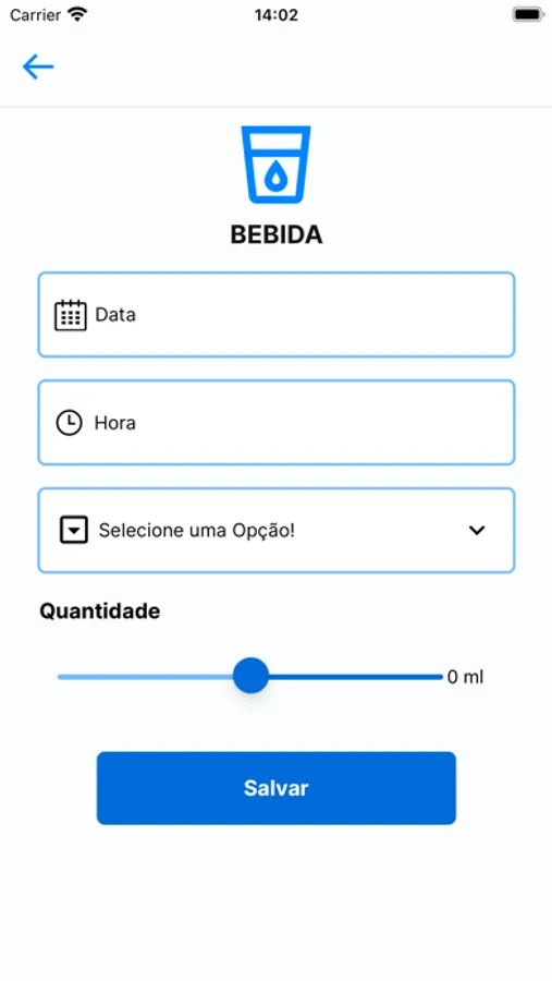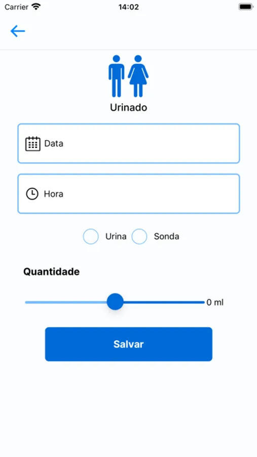App para controle e relatório de ingestão de liquidos, assim como a quantidade expelida.
