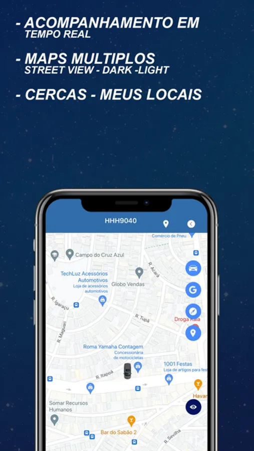 Você poderá ver aonde estão todos os seu veículos no mapa, e poderá consulta o trajeto diário, e visualizar todos os locais que seu veículo esteve no dia.