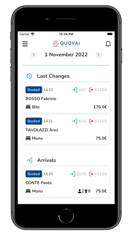 Welcome to our new app Quovai! This app aims at helping you to manage your accommodation property on-the-go. It is designed for small to medium-sized hotels, B&Bs, residences, short-term holiday rentals etc. The basic operations are at your fingertips with an easy-to-use interface and simple navigation. The app is free and we hope you enjoy using it.