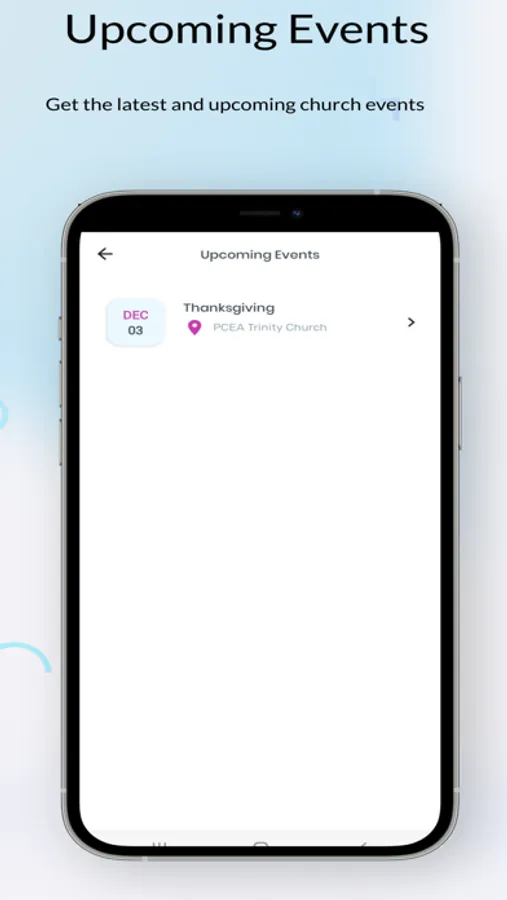 3. Upcoming events - Users will get the upcoming events as they come in and get to keep in touch with the church activities.4. Daily Verses - The users get daily bible verses to continually nourish souls with the word of God and enjoy the Bible study journey.