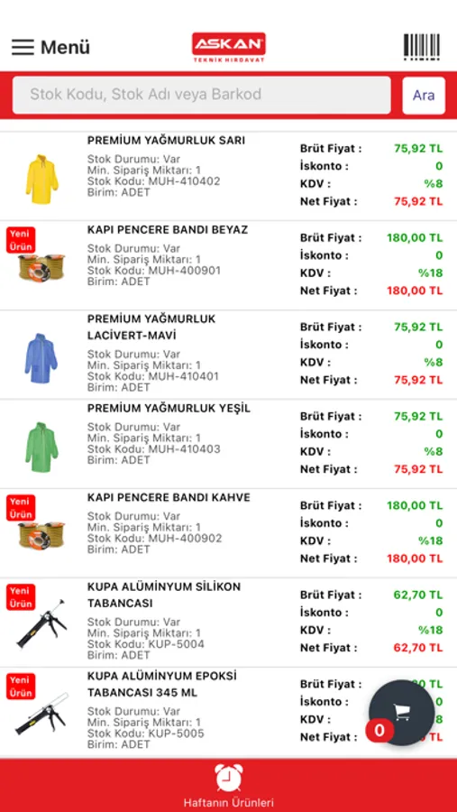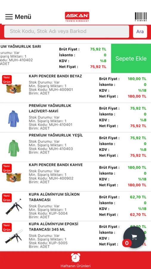 - Cihaz Kamerası ile Barkodu Taratarak Ürün Arama