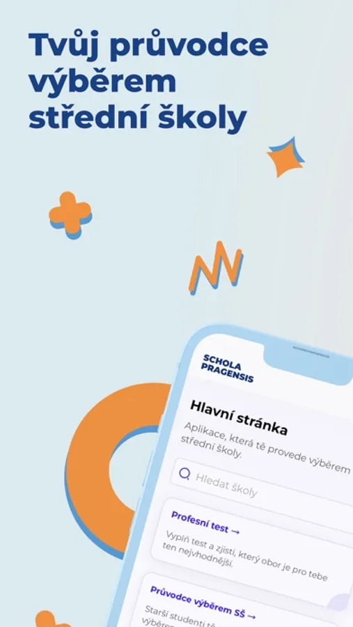 Ukončuješ základní školu a hledáš, kam dál? Aplikace Schola Pragensis ti pomůže s výběrem střední školy. Najdeš v ní přehled téměř všech středních škol v Praze. Instruktážní videa tě provedou výběrem školy úplně od začátku. Jednoduchý profesní test ti potom pomůže vybrat zaměření, pokud si jím stále není jistý/á. V samostatných videích se ti pak jednotlivá zaměření představí podrobněji. Pokud své zaměření již znáš, v katalogu škol můžeš jednotlivým pražskými středními školami listovat a filtrovat si je podle zaměření, oboru, lokality či školného. Ty, které ti padnou do oka, si můžeš uložit do oblíbených a mít tak lepší přehled. V neposlední řadě najdeš v aplikaci mapku veletrhu, aby jsi své oblíbené školy snadno našel/a a 24. – 26.11. jsi na fyzickém veletrhu nebloudil/a.