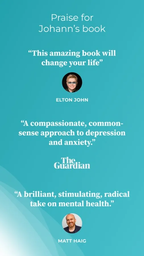 Johann Hari is an award-winning journalist and the author of three New York Times-bestselling books which explore how modern society impacts depression, addiction and attention. His books have been praised by a broad range of people, from Oprah to Elton John to the British Journal of General Practice. Together with Johann we have turned his book into an interactive course, which will help you apply lessons from the book to your life.