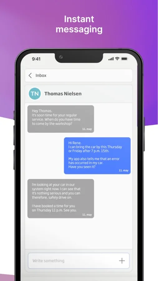 Direct connection to a mechanic through the app. A convenient way to communicate with your workshop anytime you want.