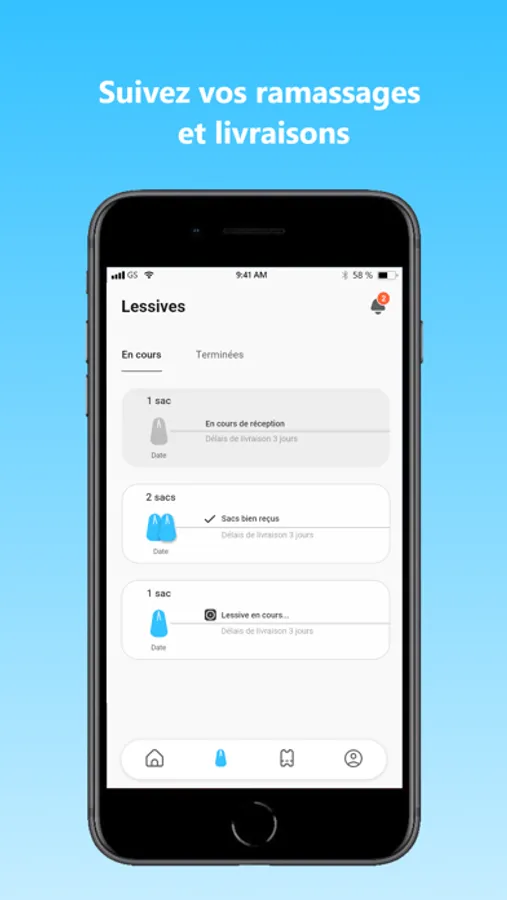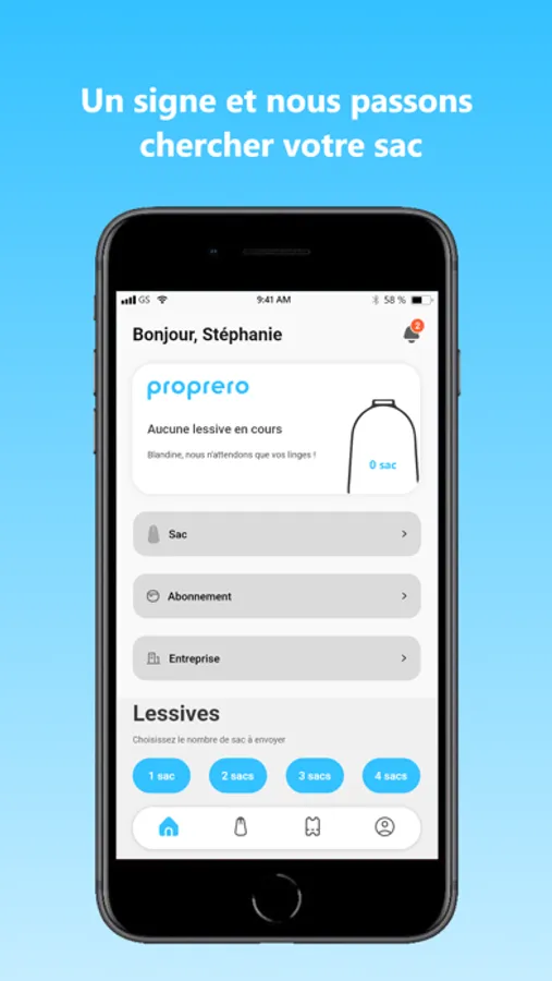 Vous avez mieux à faire que la lessive. Nettoyez vos vêtements en quelques clics dans l'application. Faites nous signe pour le ramassage et nous passerons rapidement récupérer votre sac à linge Proprero directement devant votre porte d'entrée. Vos vêtements seront proprement nettoyés, afin que vous puissiez vous asseoir et vous détendre. Vos vêtements vous seront livrés fraîchement nettoyés, ce qui vous fera gagner des heures de lessives chaque semaine.