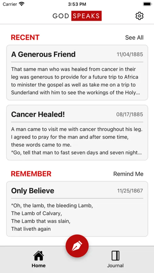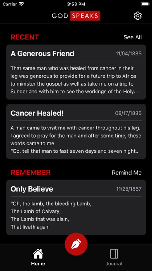 GodSpeaks is your with-you-everywhere journal of the God moments you can't afford to leave behind. It is your remind-you-when-you-need-it-most friend because we are called to remember on both our best and our worst days. We built GodSpeaks with technology that is normal for today, but we pray over what we've built with a God who is beyond our understanding. Our prayer is that God would take this app that we built, a simple offering, and allow it to impact all who use it.