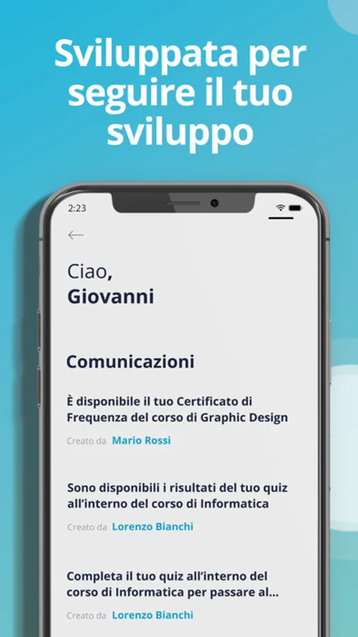 Attraverso un set per la personalizzazione di font, colori, loghi, foto di copertina, hai inoltre la possibilità di creare spazi di apprendimento personalizzati e coerenti con l’identità della tua azienda.
