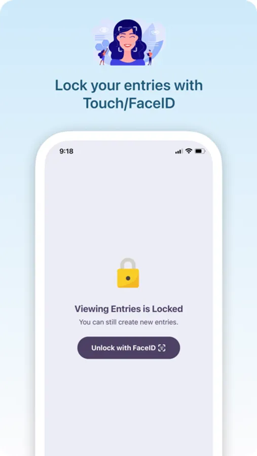 Keep your entries private by locking your journal with Touch/FaceId. You are still able to create new entries while your journal is locked to help make using Scribble as quick and easy as possible.
