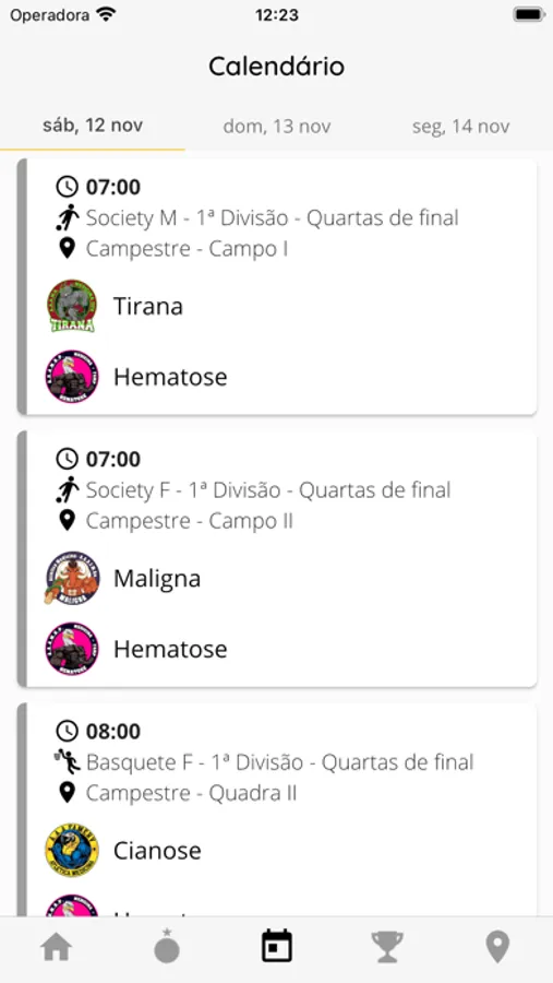 - Ver o calendário de jogos da competição, chaveamento das modalidades e classificações