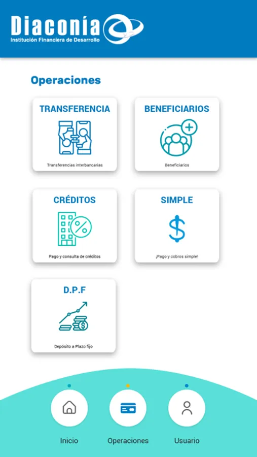 Cobros y Pagos Simple, así mismo le permite realizar el pago de créditos, consulta de saldos y movimientos.