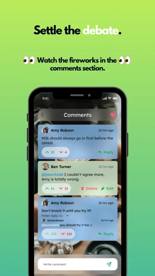 With local polls shown in your poll feed, you can connect to the community around you, get the gossip and never miss out.