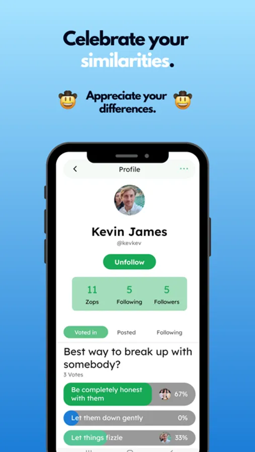 With Zoplo, you can post and vote in polls on any topic, ranging from pop culture and current events to hypothetical situations and would you rather questions. Scroll through the personalised poll feed, voting in polls, understanding the world, one vote at a time. Follow friends and influencers to see how similar you really are. Stay up to date with the hottest topics by voting in the top polls on the Zoplo leaderboard. Or climb the leaderboard yourself by posting a thought-provoking poll.