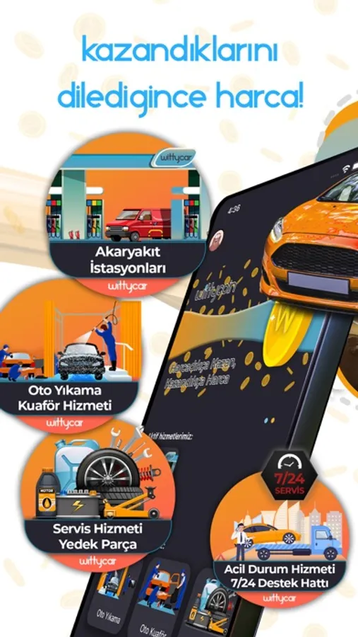 WittyCar dünyasında, aracınıza sizin kadar önem veriyoruz. Tek tıkla yüzlerce iş yerinden anında hizmet almaya başlayabilir; Aldığınız hizmetin durum bilgilerini uygulama üzerinden anlık olarak takip edebilirsiniz. Mobil uygulama üzerinden ödeme işlemleri yapabilir, harcamalarınızı kontrol edebilirsiniz.