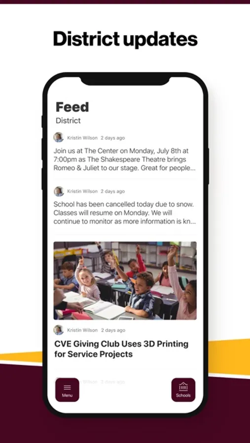 In the Live Feed is where you'll find updates from the administration about what's going on in the district right now. Whether that's celebrating a student's success, or reminding you about an upcoming deadline.