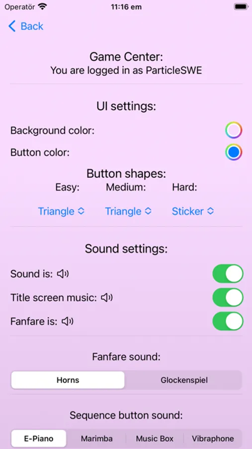 - Customizable colors for the buttons and the background.