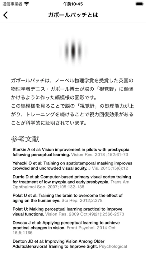 視力回復に有効と言われているガボールパッチを表示するシンプルなアプリです。
