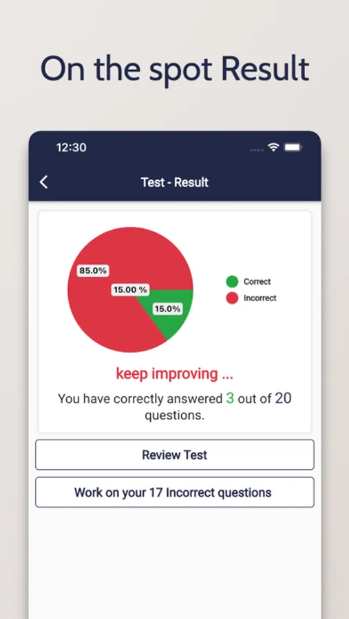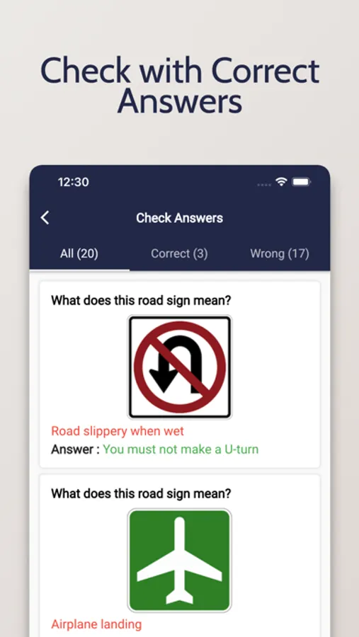 You will make more progress with G1 Practice Test than with any other traditional approach since you may take the tests wherever and whenever you choose, without the need to be connected: at the bus stop, at a bar, in the classroom, at work, or in the dentist's waiting room...!